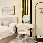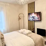- ❓Czy w apartamencie znajduje się kuchnia do użytku gości?Tak, apartament wyposażony jest w pełnowymiarową kuchnię i oferuje czajnik elektryczny, lodówkę i toster.